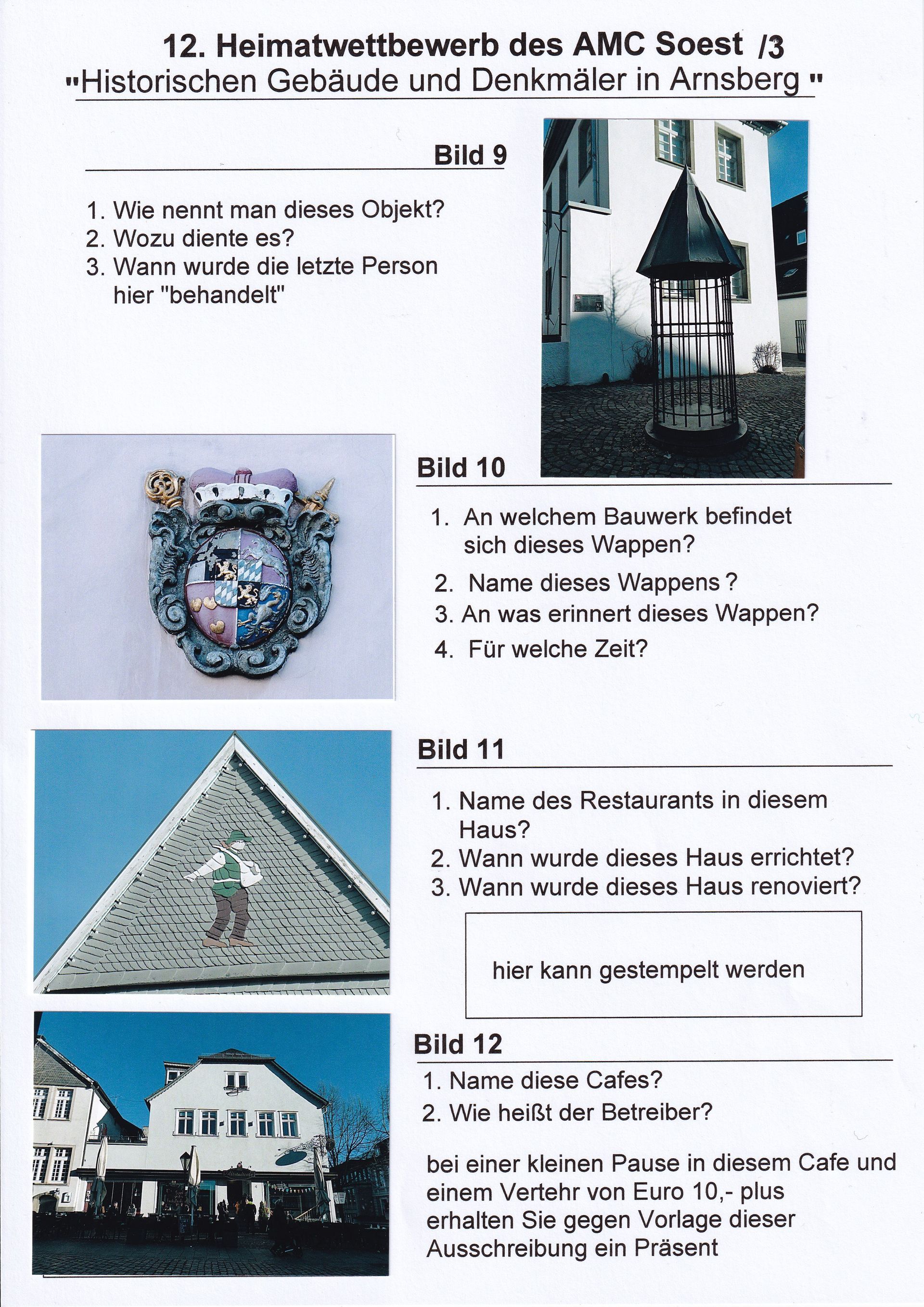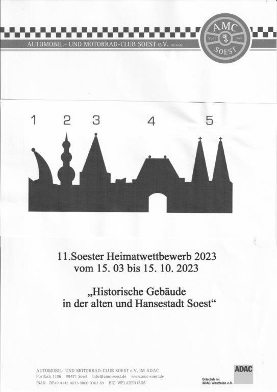 Der AMC Soest bedankt sich für Ihre Teilnahme an unserem diesjährigen Heimatwettbewerb des AMC Soest. Mit der Konzentration der Fragen auf den historisch interessanten Ort Arnsberg haben wir versucht auch etwas „nachhaltig“ zu werden. Alle Objekte/Fragen waren fußläufig zu erreichen.