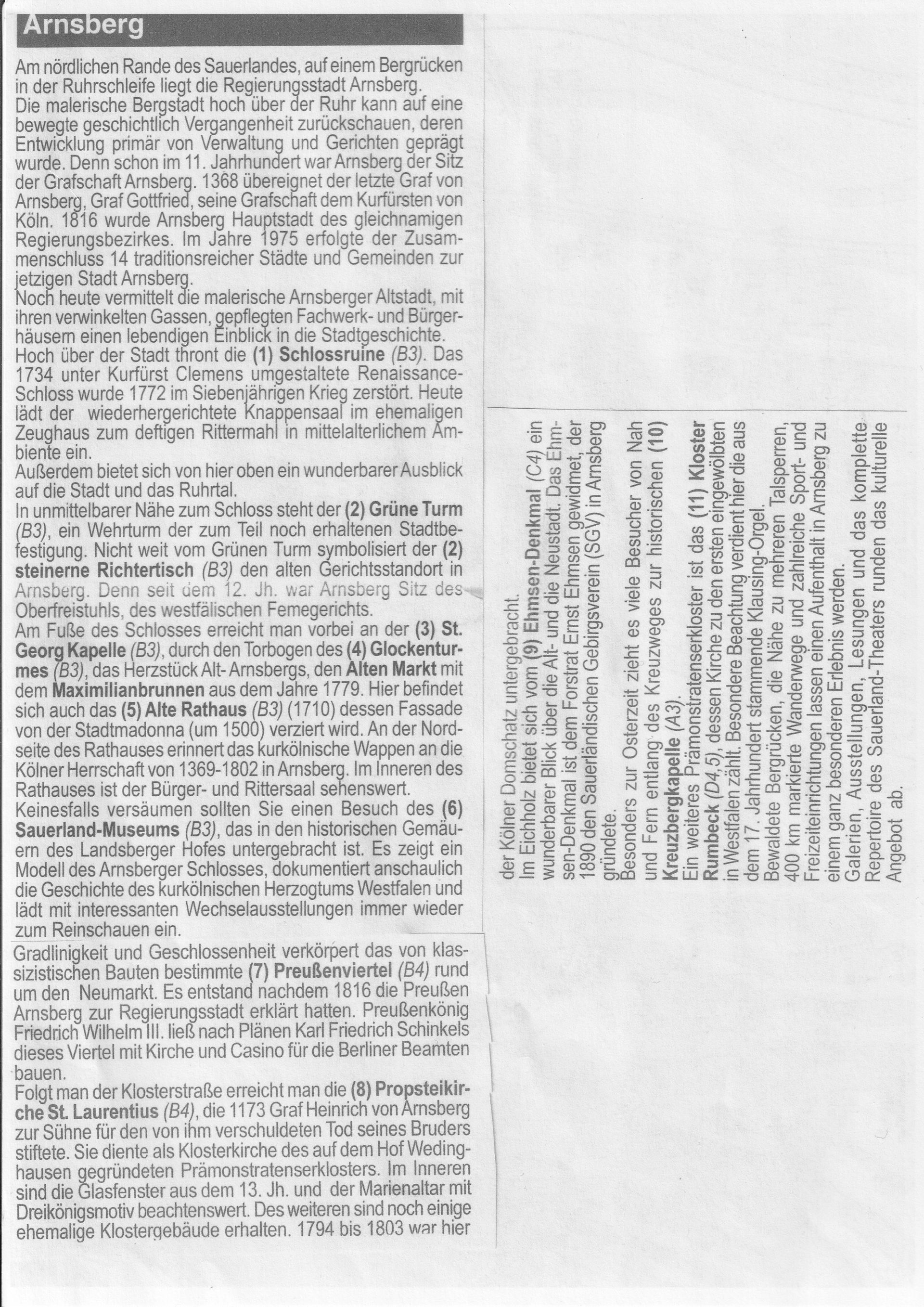 Zur Geschichte von Arnsberg brauche ich nicht viel erzählen. Wenn Sie sich eingehend mit unserem 12. Heimatwettbewerb beschäftigen und die Antworten zu den Fragen finden, wissen Sie mehr als mancher Arnsberger Bürger.