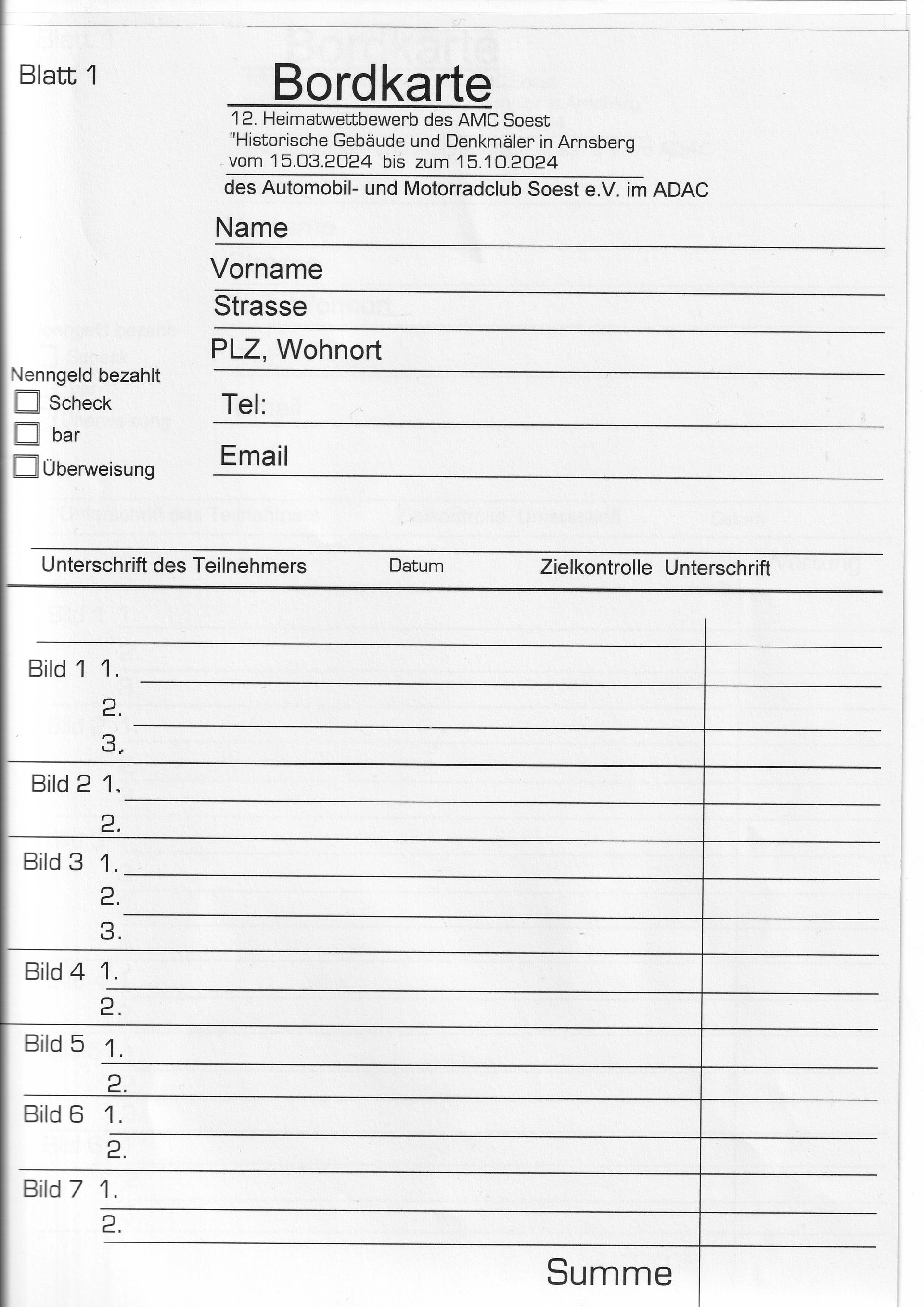 Geschätzte Teilnehmer der Heimatwettbewerbe des AMC Soest.